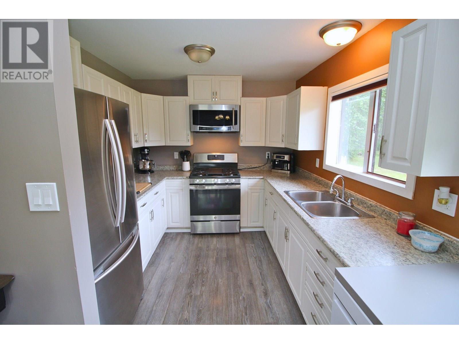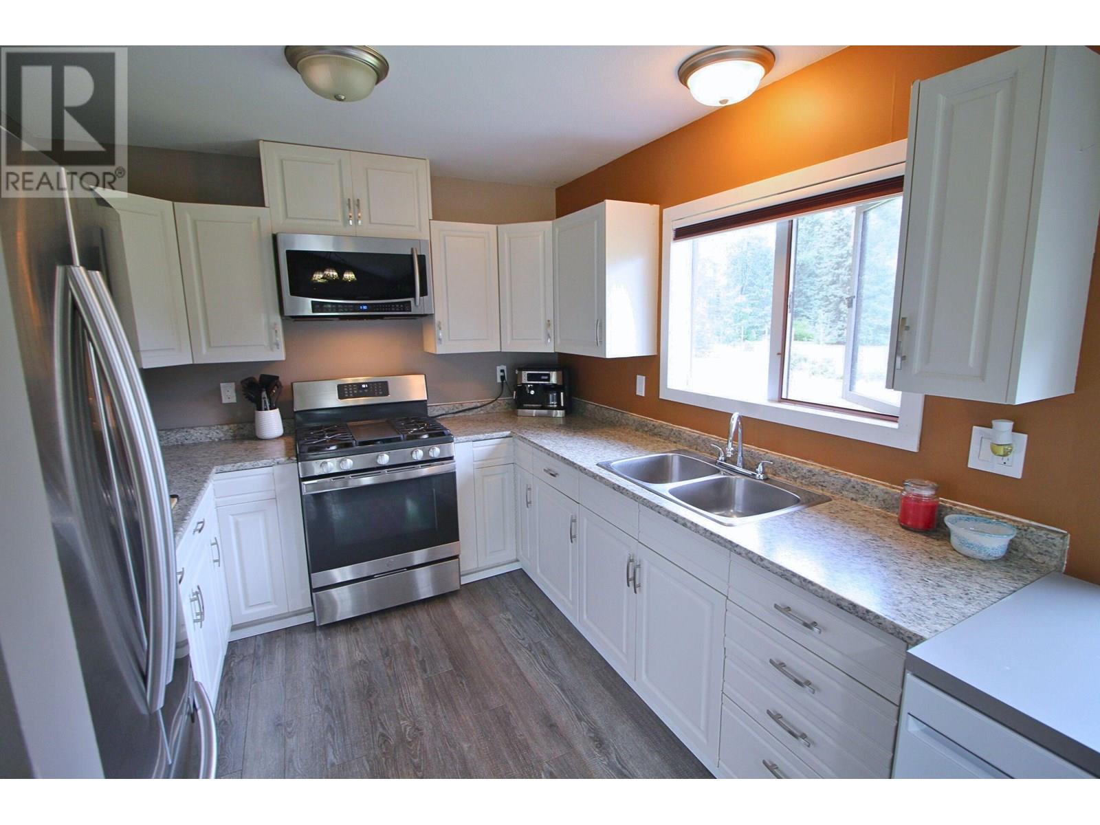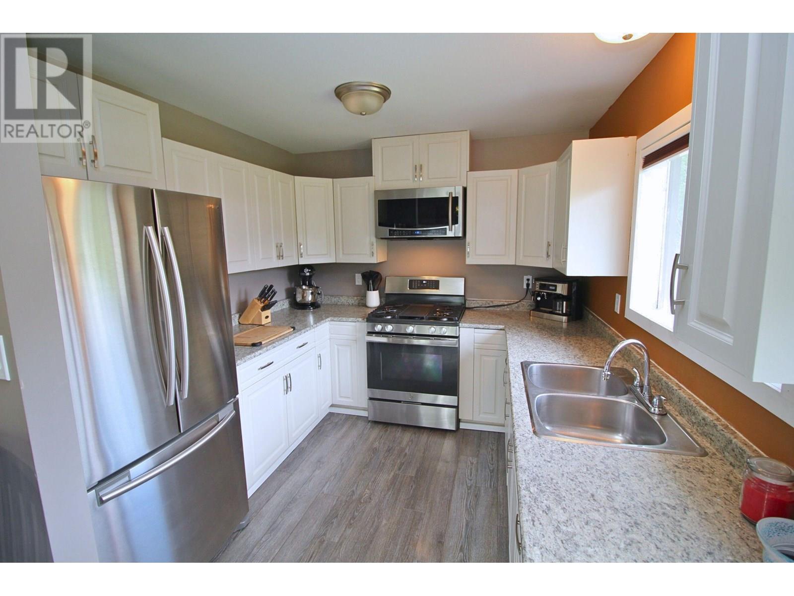Nicely situated 3 bdrm home on 0.84 acre double lot backing onto Ridgefield creek with a huge 42'x24' shop on concrete slab with 16' high doors & shop crane. Separate 200 amp hydro services to both the house & shop. Large open yard, garden area, wood shed, & path down to a neat little spot by the creek! The main living area in the house is nice & open featuring vaulted ceilings in the livingroom/eating area, wood fireplace, & nicely updated kitchen. 2 generous sized bdrms on the main plus 4 pc bathroom. The bsmt offers a 3rd bdrm, bright recroom & den, laundry/utility room, another 4 pc bathroom, & a spacious mudroom with wood stove and outside bsmt entry. Value-adding improvements include updated fixtures, metal roofs on both house & shop, paint, trim, kitchen renovation, & rec room. (id:4069)