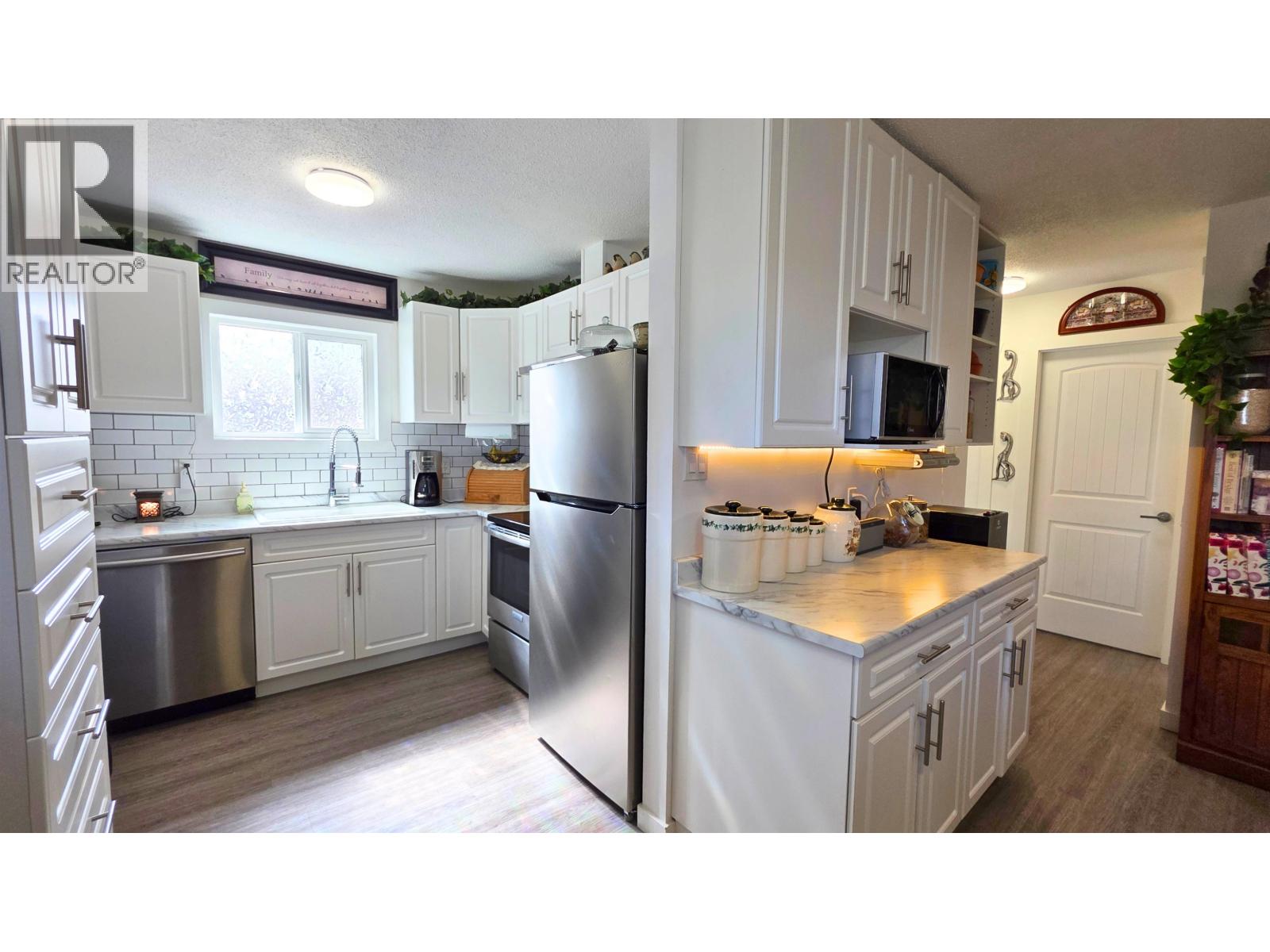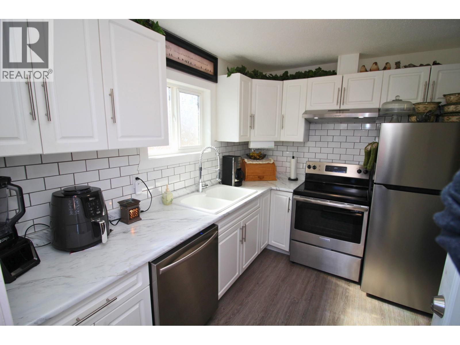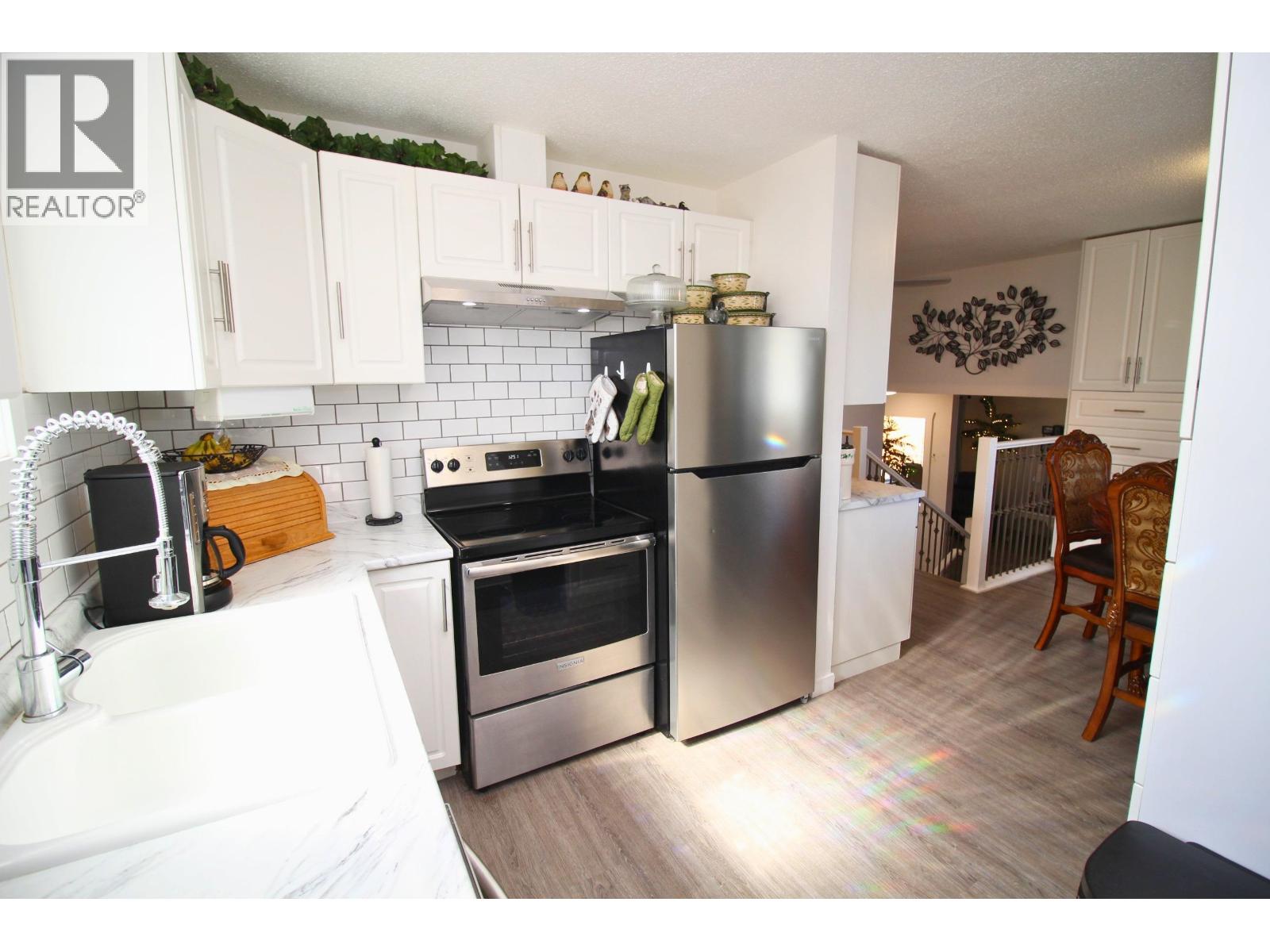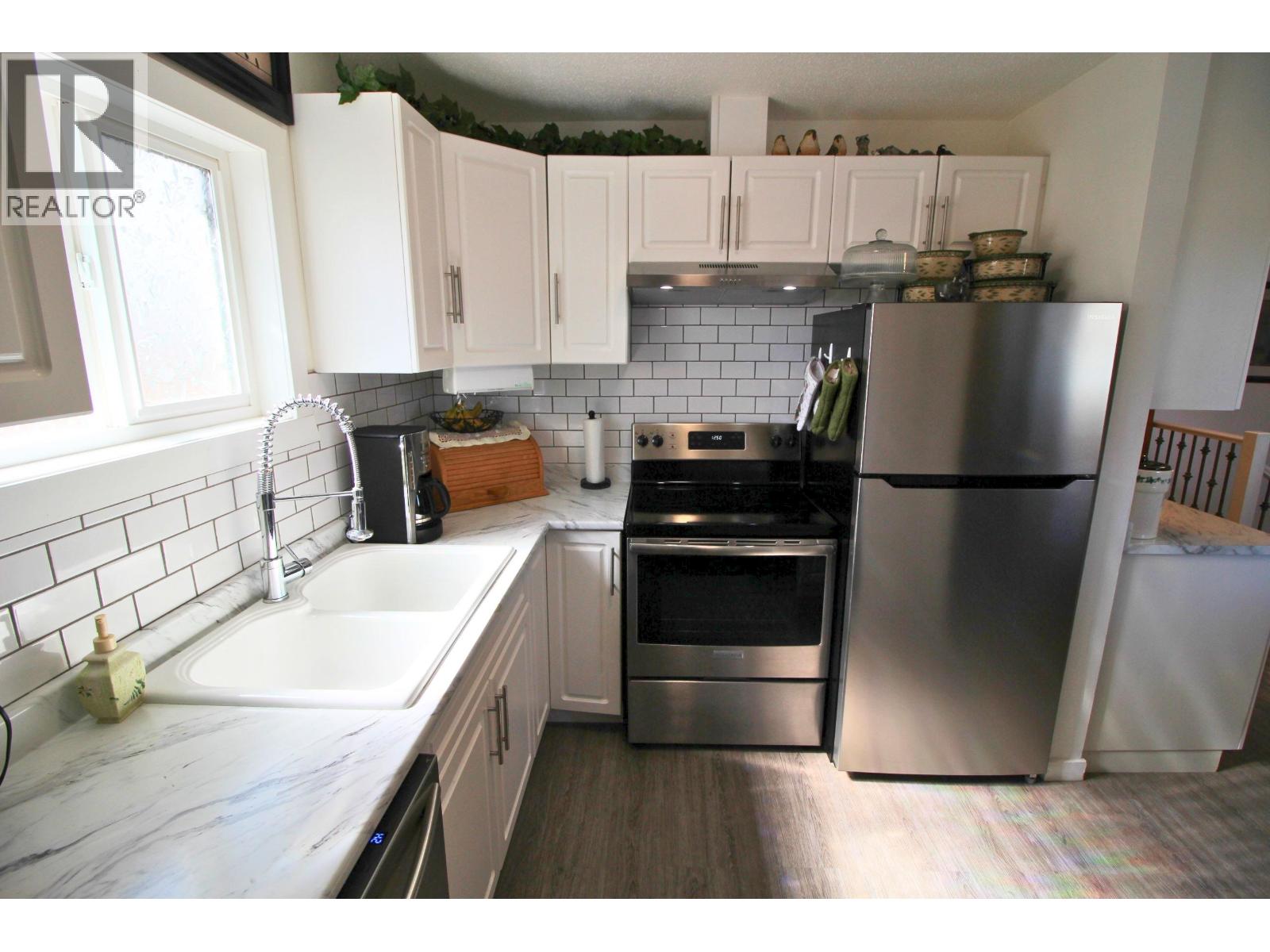 MOVE-IN-READY centrally located 3 bdrm/2 bath home close to elementary school, shopping, recreation centers & all downtown amenities! Fully fenced lot, ample parking, nicely landscaped backyard w/ raised garden beds, raspberry bushes, greenhouse, storage shed, sea-can, & sundeck... plus a great covered patio area in the front. Convenient ground-level entry to cozy living rm on the main. Above is nicely updated kitchen & eating area w/ lots of cabinets & access to the backyard sundeck. 2 bdrms & an updated 4 pc bath complete the main level. Below is a 3rd bdrm, 3 pc bath, laundry/utility room, & a nice family rm w/ custom gas fireplace (currently set up as primary bdrm). Lots of value-adding updates incl kitchen/baths updates, flooring, fixtures, electrical, vinyl windows, roofing & more! (id:4069)